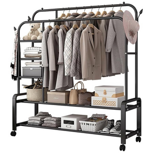 Le portant à vêtements PIXA, c’est bien plus qu’un simple cintre : c’est un véritable dressing mobile 4-en-1, pensé pour transformer n’importe quelle pièce en espace ultra-fonctionnel.