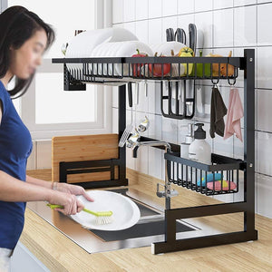 Il dispose également d'une étagère , vous permettant de ranger vos ustensiles de cuisine tout en égouttant vos assiettes et casseroles. Cette fonctionnalité pratique vous permet de gagner de l'espace dans vos armoires et de rendre votre cuisine plus ordonnée.
